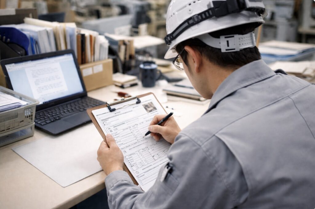 作業報告書、工程表、日報、写真記録、チェックリスト、点検表などの作成・提出